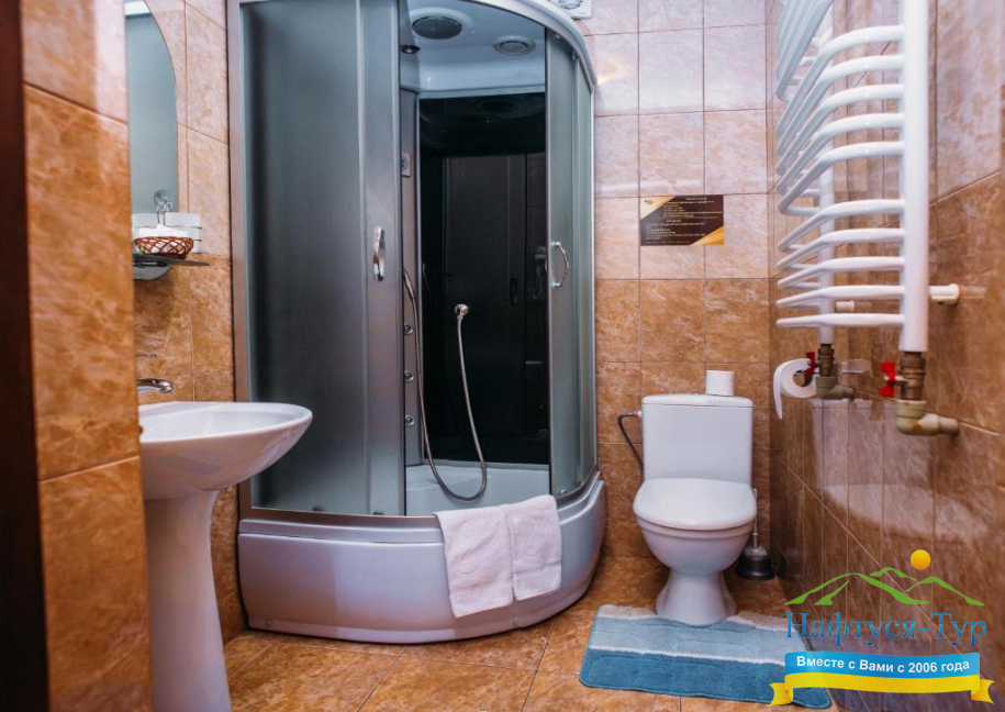 - душевая кабина, фен, косметический набор