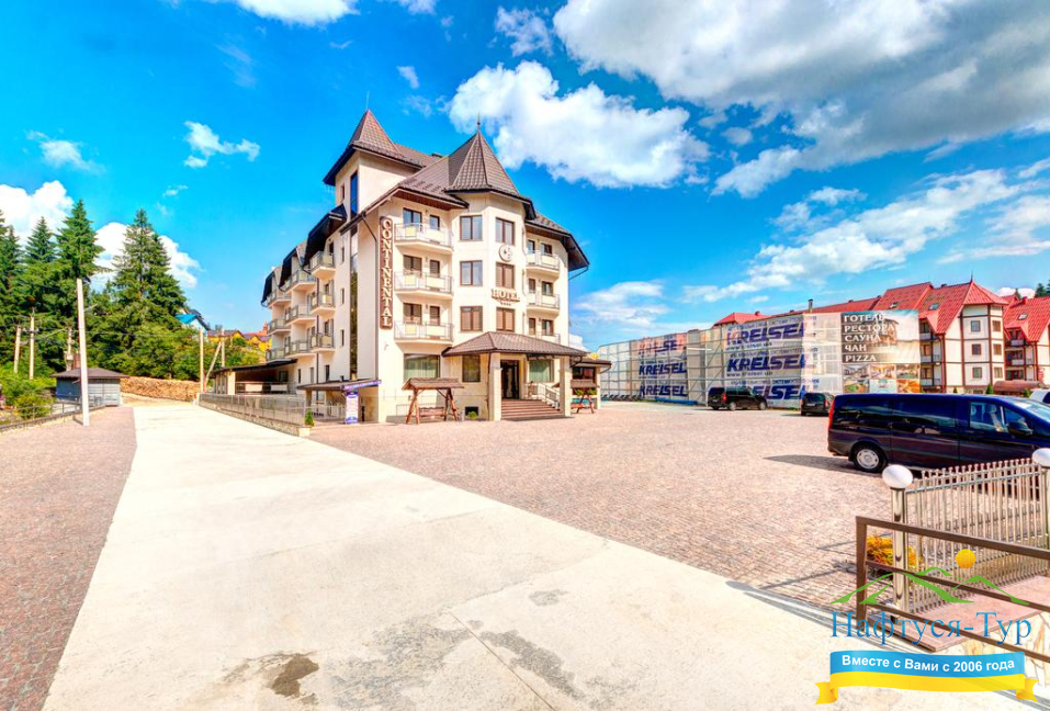 . Акции, скидки, отзывы о отеле Континенталь, как расположен отель на карте вы узнаете на нашем сайте. Так же вы можете ознакомиться с условиями проживания, дополнительными услугами в отеле Continental Буковель. Звоните, бронируйте и получайте удовольствие от обращения в нашу компанию и на официальный сайт Нафтуся-Тур.
