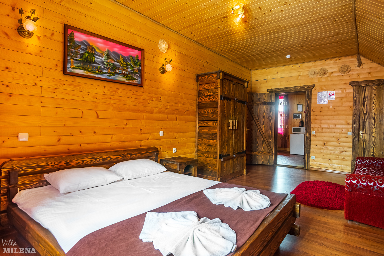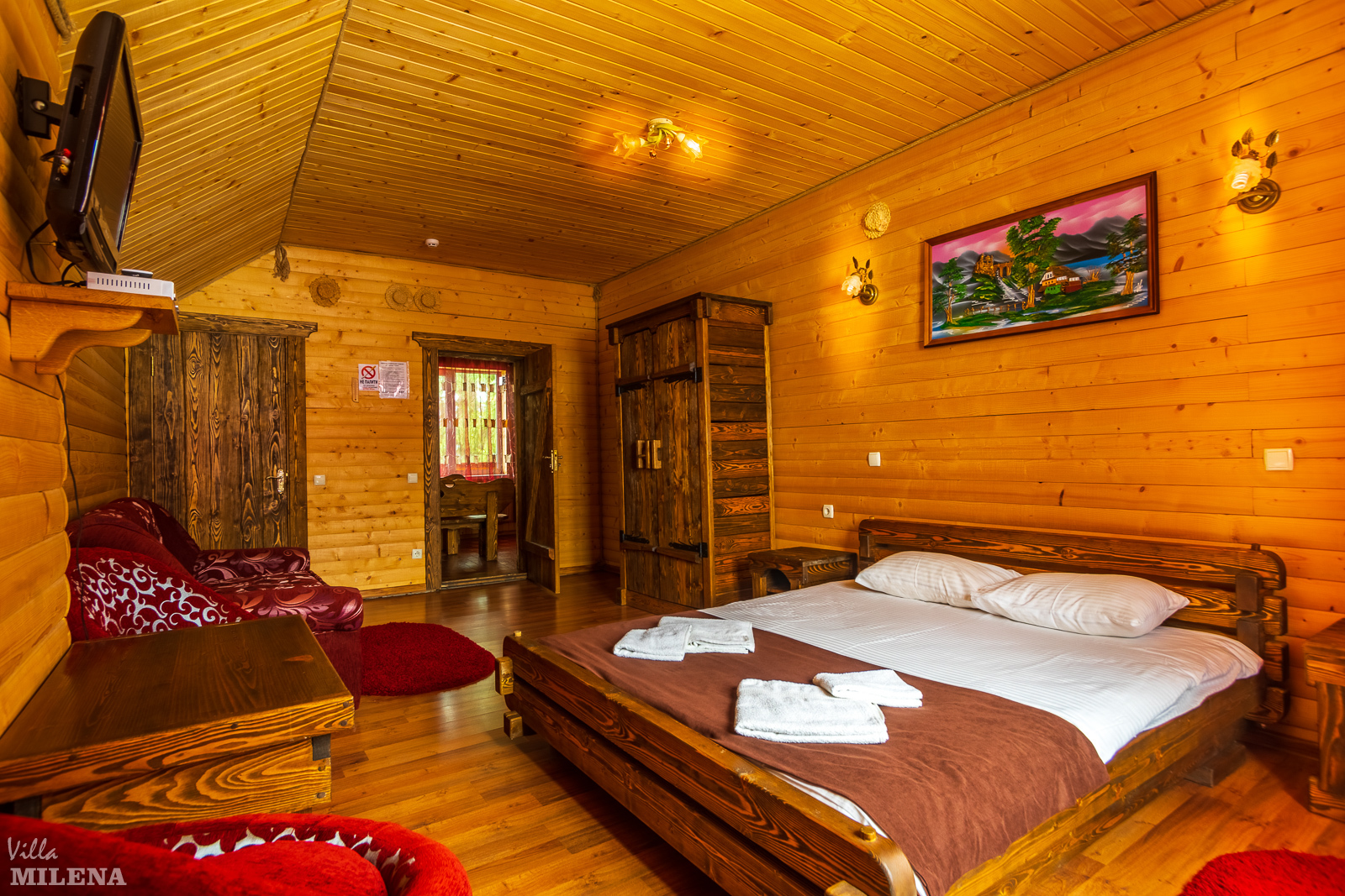 Вилла «Милена» Буковель состоит из отдельных деревянных коттеджей, полных домашним уютом и комфортом.
