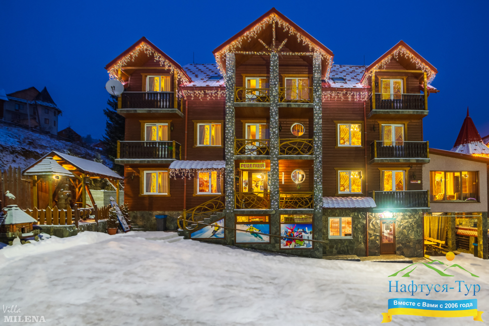 . Акции, скидки, отзывы о отеле Вилла Милена, как расположен отель на карте вы узнаете на нашем сайте. Так же вы можете ознакомиться с условиями проживания, дополнительными услугами в отеле Вилла Милена Буковель. Звоните, бронируйте и получайте удовольствие от обращения в нашу компанию и на официальный сайт Нафтуся-Тур.
