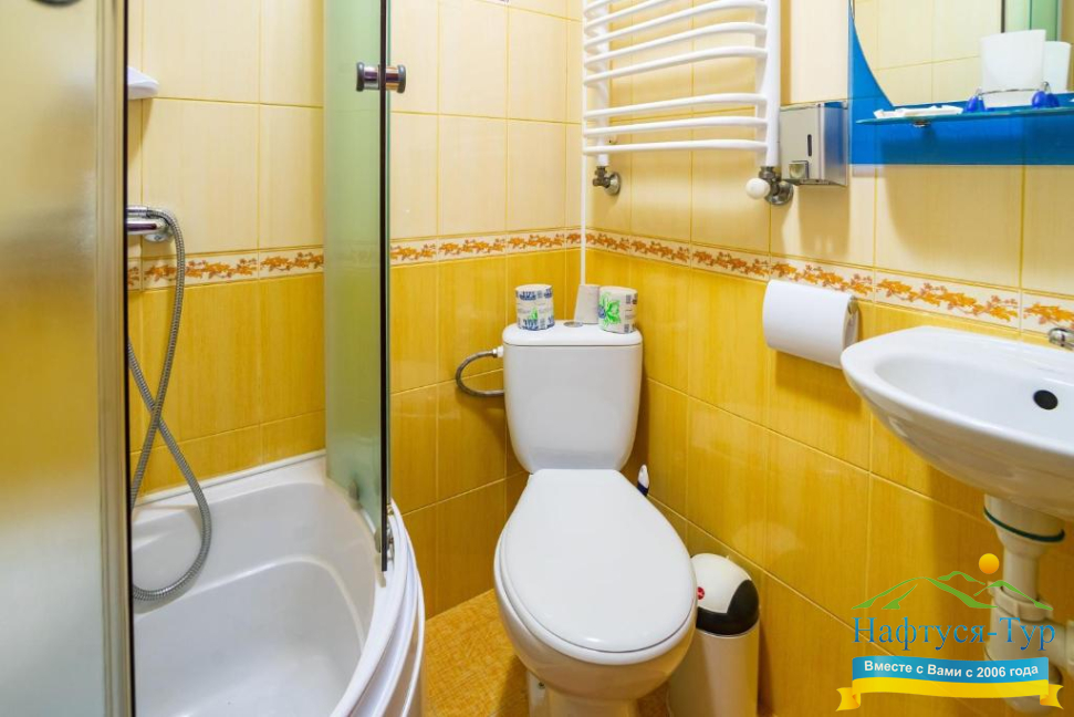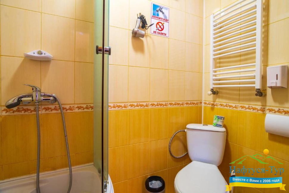 - душевая кабина, набор полотенец