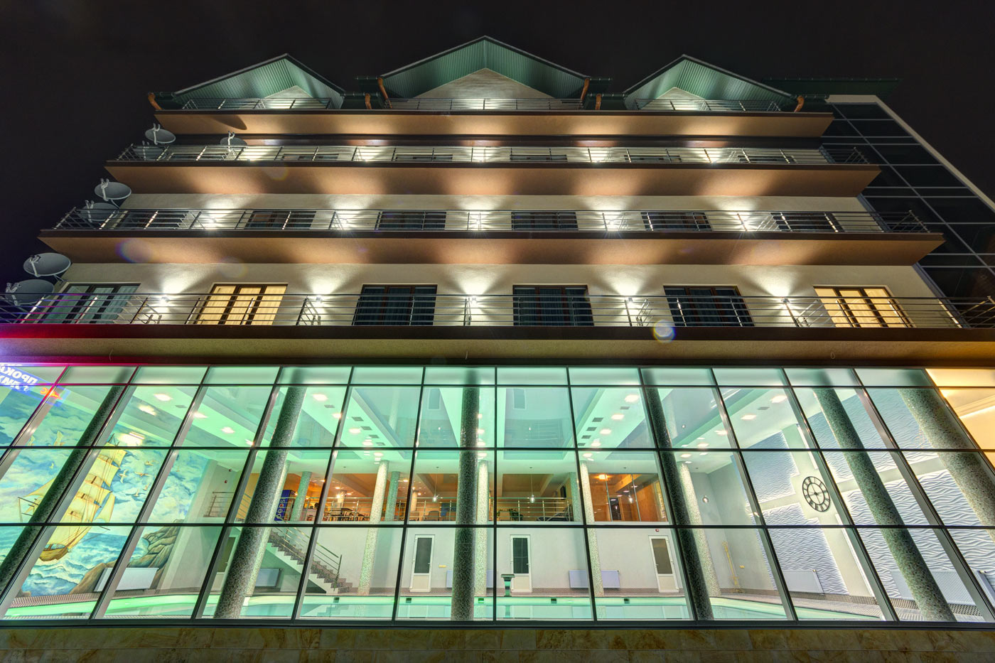- открытый и крытый бассейны