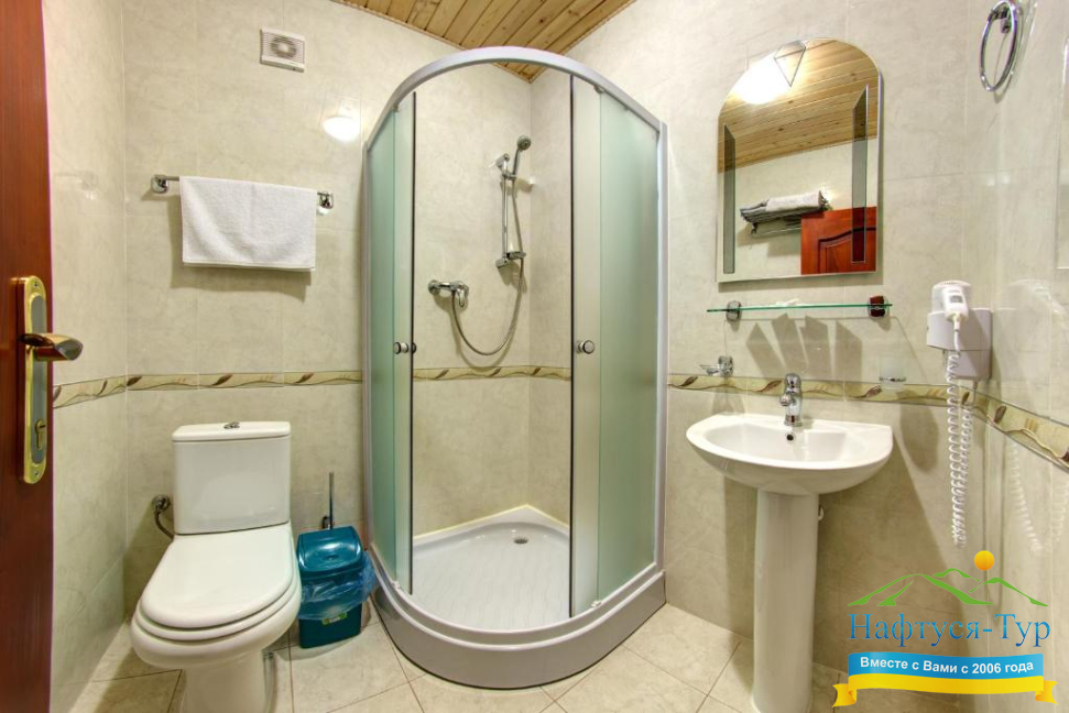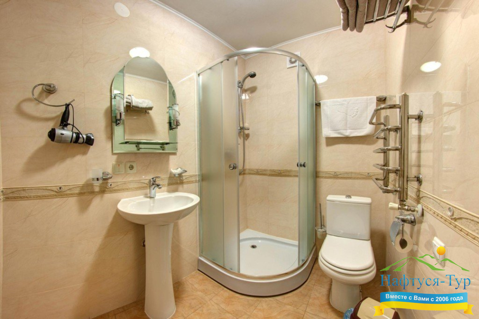 - душевая кабина, косметический набор, фен