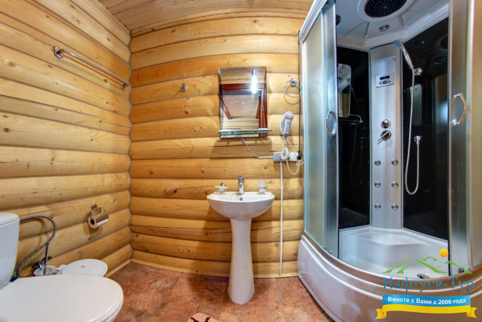 - душевая кабина, фен, косметический набор