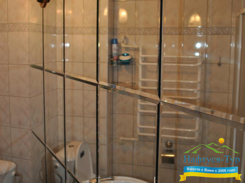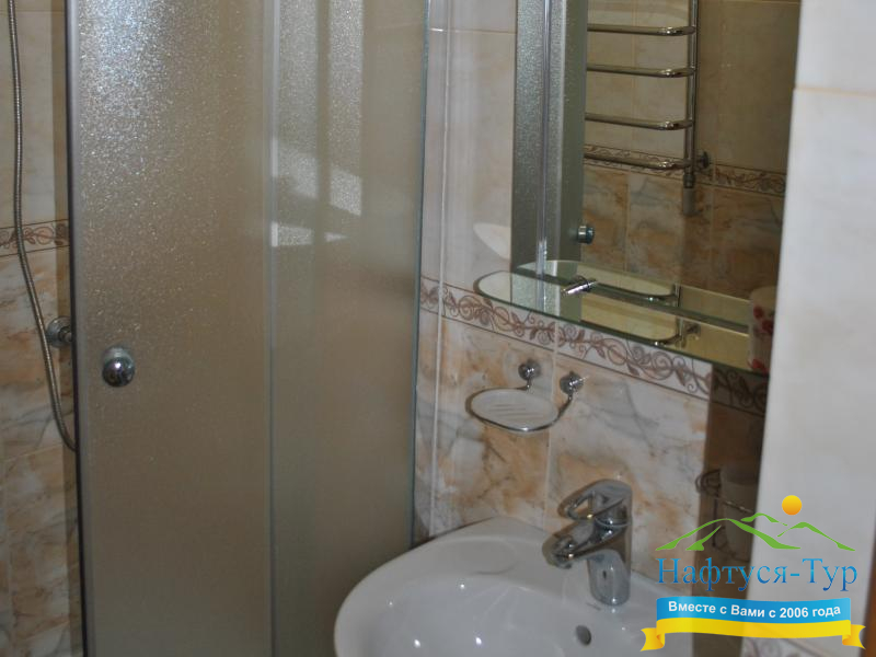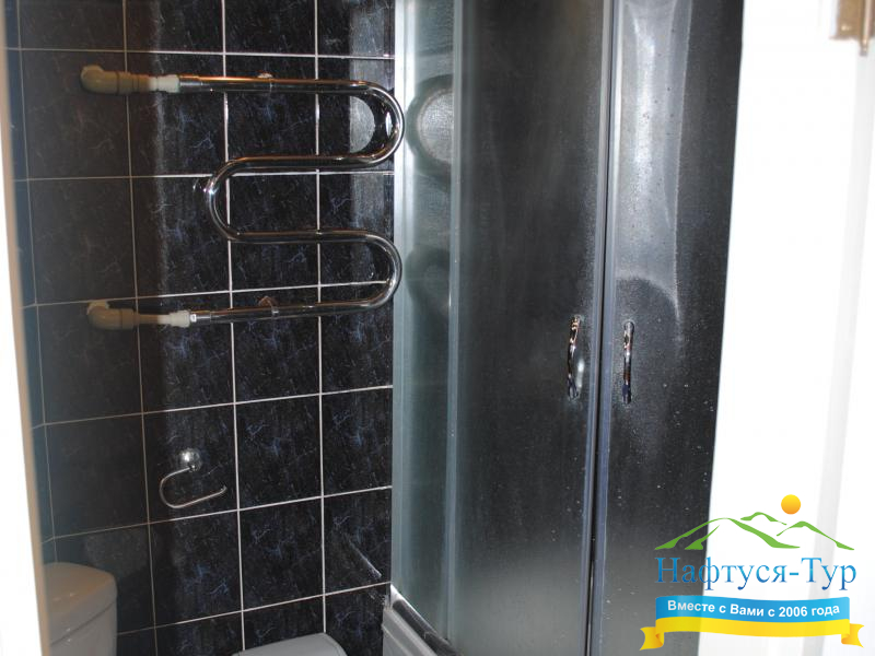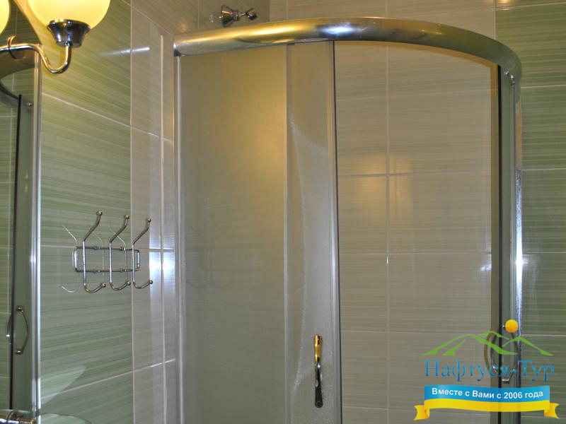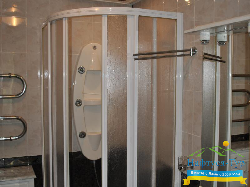 - душевая кабина, набор полотенец