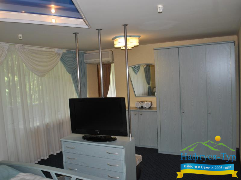 Цена не соответствует качеству. Проживание в люксе. Но две комнаты не означают, что это люкс, поскольку в нем много недостатков (душ, жалюзи на окнах не закрываются, сломаны, в номере комод пахнет плесенью и затхлостью).