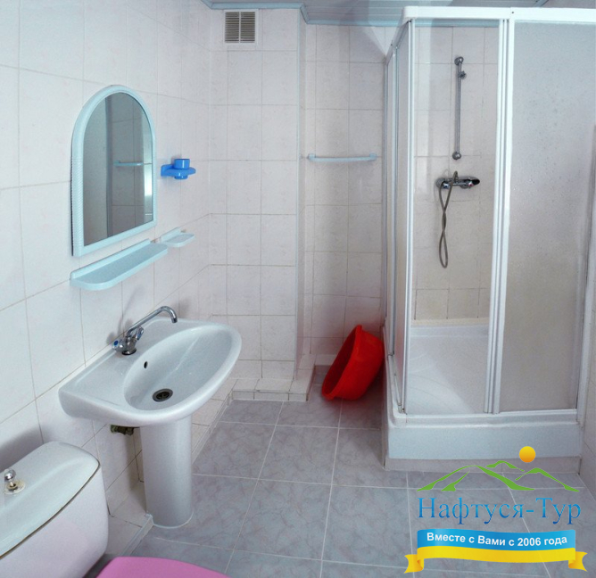 - душевая кабина, ванна, набор полотенец