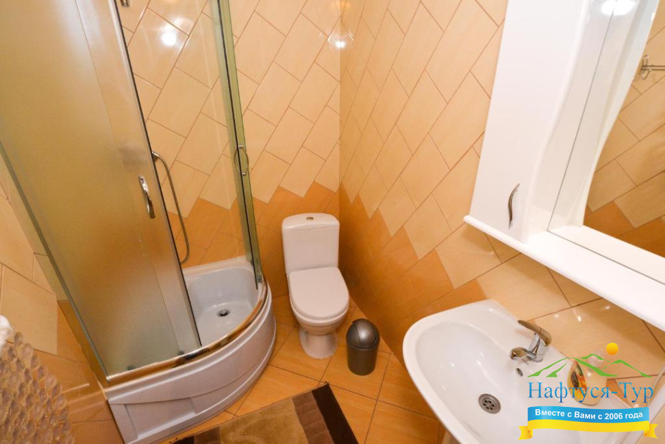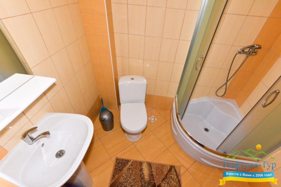 - душевая кабина, набор полотенец
