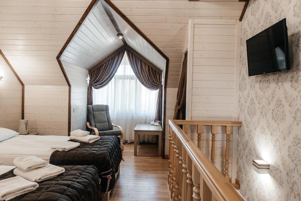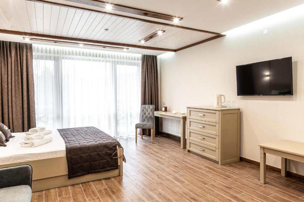 Чудовий готель для відпочинку з сім'єю, чистий комфортний номер з усіма зручностями. Поблизу ліс. Інтернет працює чудово, а зв'язок був поганий іноді зовсім не було, що дуже нас порадувало - відпочили від роботи))) для нас це +.