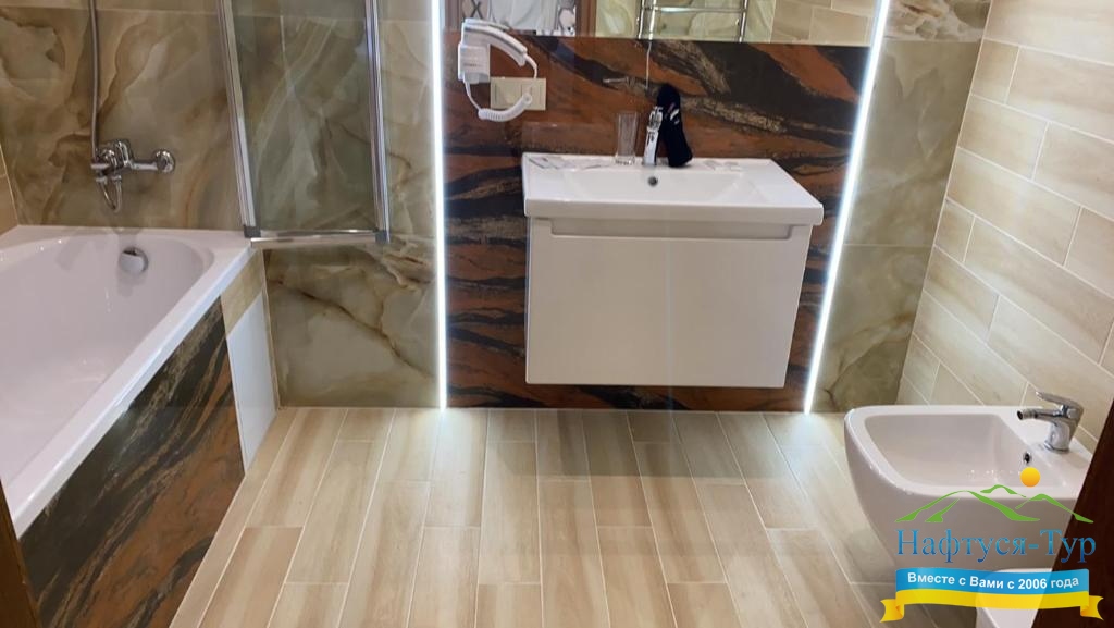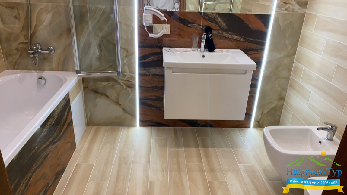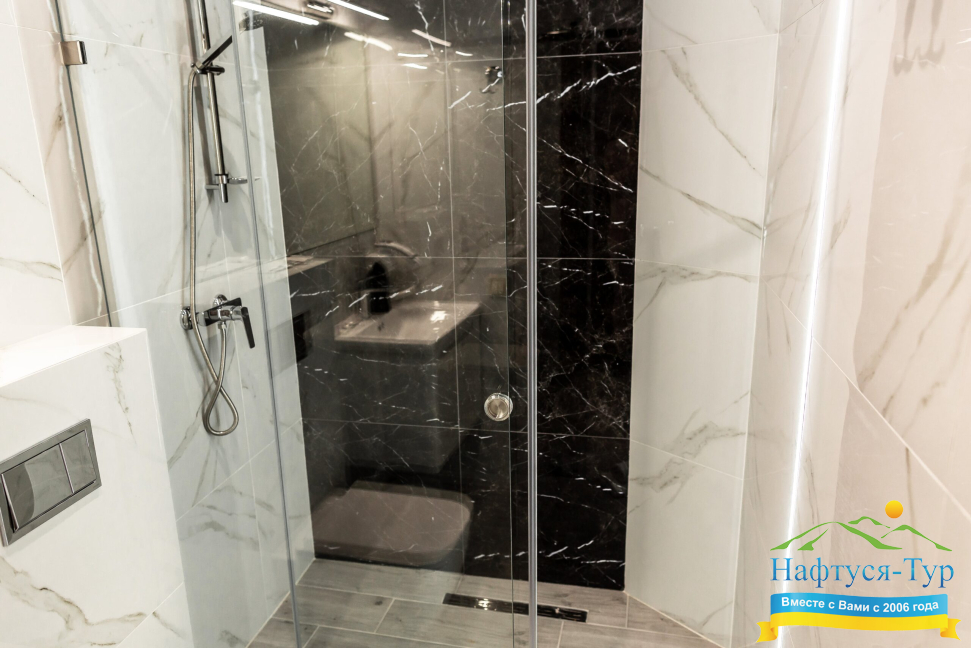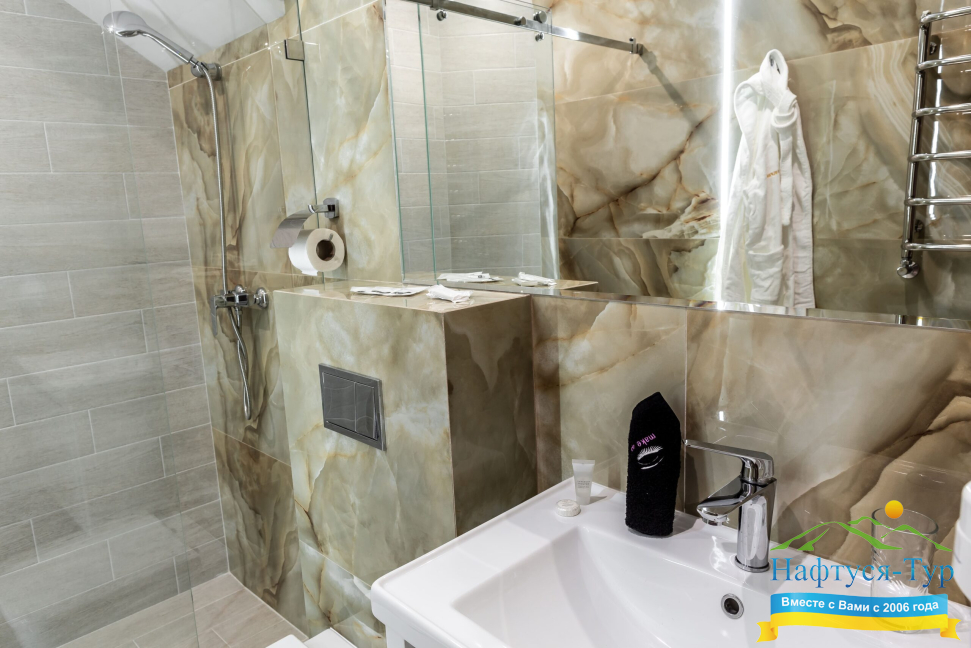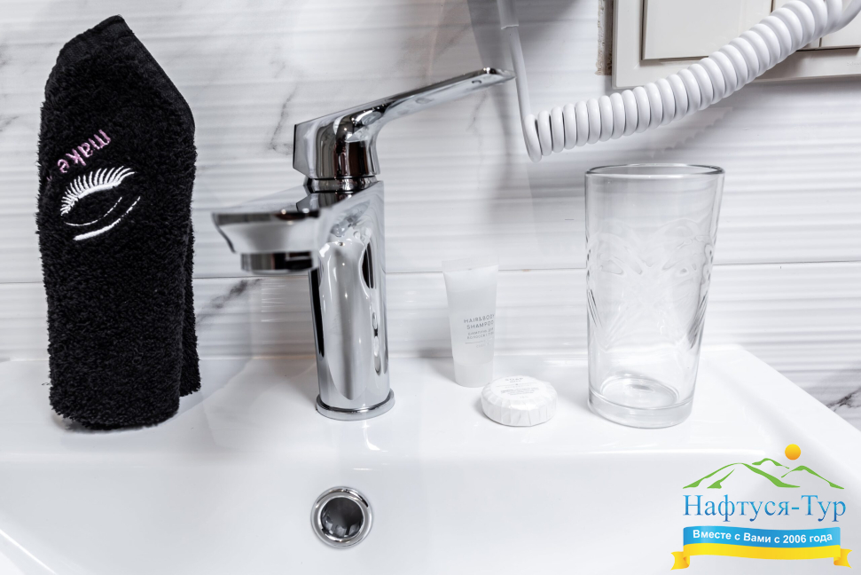- душевая кабина, фен, косметический набор
