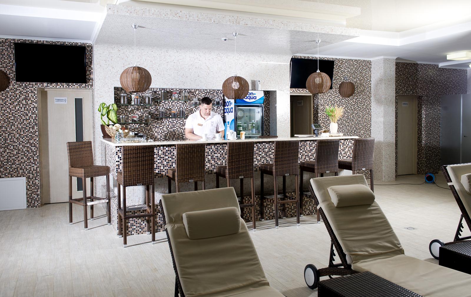 - к Вашим услугам: детский бассейн, джакузи, хамам, финская сауна, фито-бар, открытая терраса.