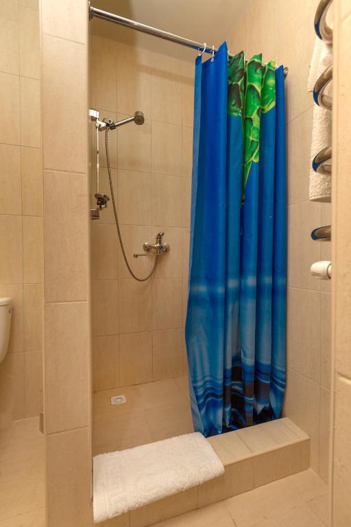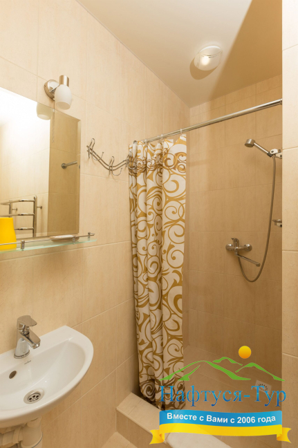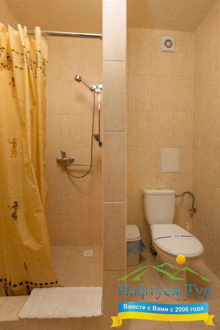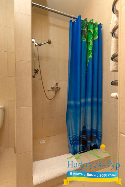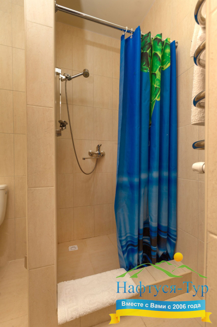 - душевая кабина, набор полотенец, фен, косметический набор
