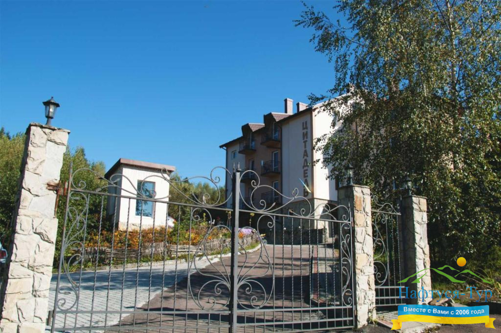Расположен Отель Цитадель в 100 метрах от источника № 18, рядом с популярным лечебным комплексом Санта-Мария. Гости отеля могут проходить лечебные и спа-процедуры в этом комплексе. Также в отеле Цитадели для гостей работает сауна с бассейном, столовая, где Вам готовить диетические блюда украинской и европейской кухонь, бильярд, мангал, открытый бассейн, услуги трансфера, интернет, консультация врача, массаж.