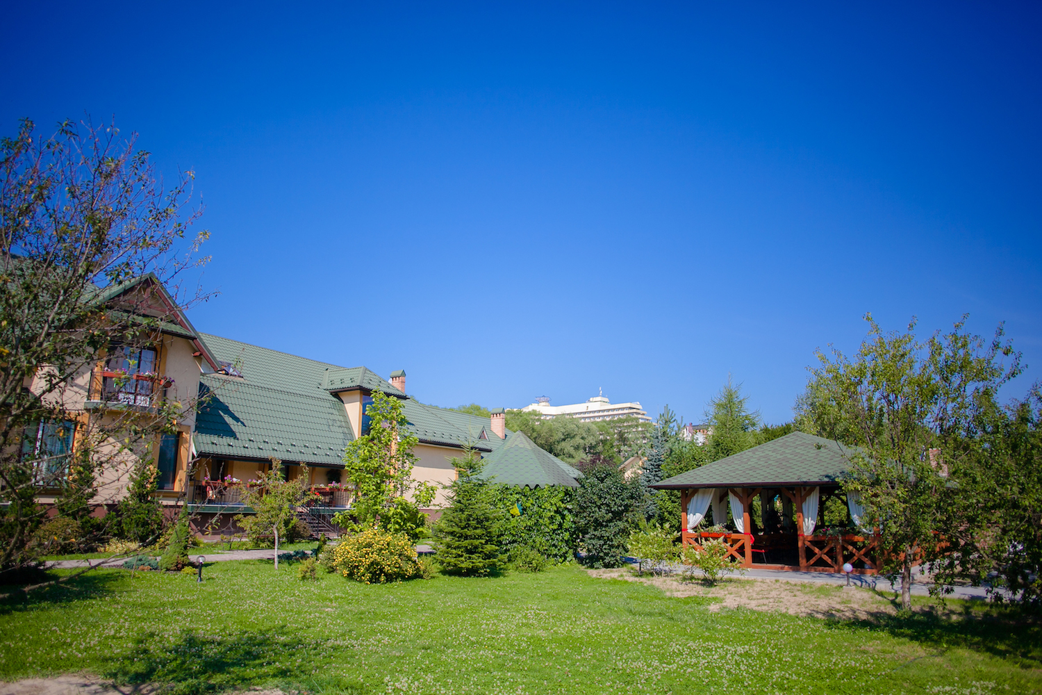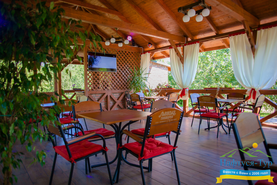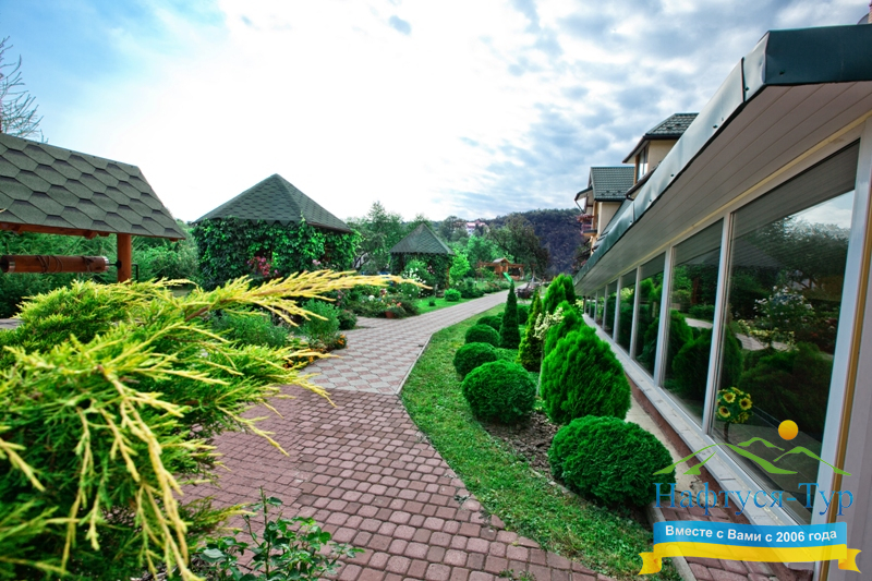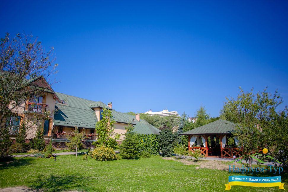 Расположен пансионат в юго-восточной части курорта возле озера, леса и одного из лучших санаториев города. Тем самым создаются все необходимые условия для организации лечения, полезных и интересных прогулок в чарующе красивом и чистом Прикарпатье.
