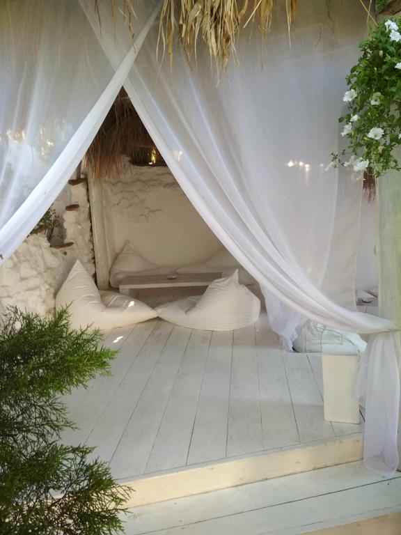 Каждый номер отеля "Хижина СПА" с гостиной зоной декорирован в уникальном стиле. В ванных комнатах предоставляются халаты и фен.