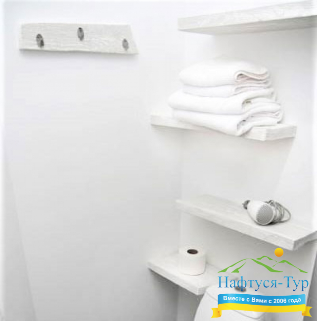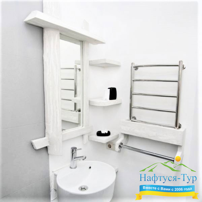 - душевая кабина, фен, халат, косметический набор