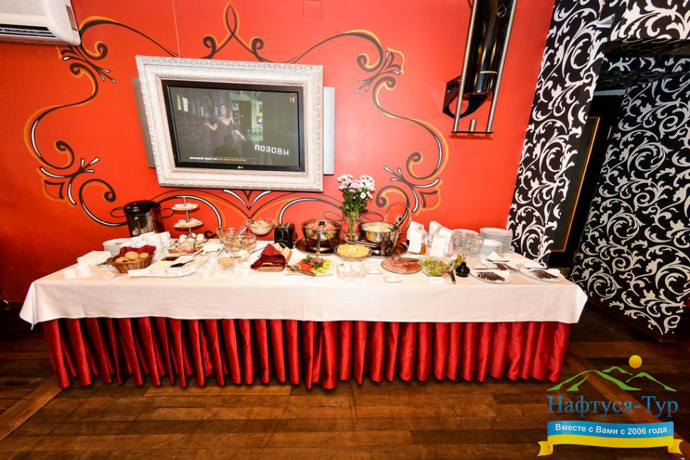 В Трускавце отель «Оскар» находится в северной части, до центрального (нижнего) бювета его постояльцы пешком доходят за 5-7 минут. Питание организовано в отличном ресторане самой гостиницы, причем завтрак в формате «шведского стола» уже включен в цену путевки. Не выходя из отеля можно воспользоваться и иными услугами – посетить сауну, римскую парную, джакузи, массажиста.