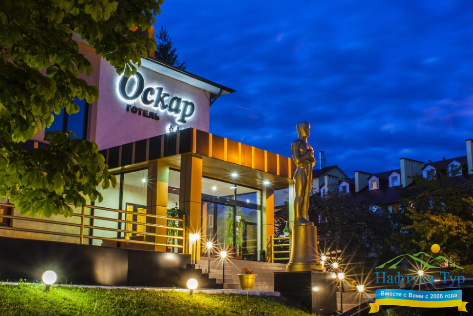 Отель «Оскар» в Трускавце – это прекрасный выбор для ценителей современного комфорта и стиля. Хорошо известно, что качественный отдых и укрепление здоровья обеспечиваются всем комплексом окружения. Поэтому имеет особый смысл выбрать в качестве резиденции не безликую гостиницу, а стильный отель. В «Оскаре» вас ожидают номера-люксы, каждый из которых имеет индивидуальный дизайн, выдержанный в стилистике Голливуда, Франции, Китая или Египта! Курортной достопримечательностью является и фигурка знаменитой американской кинопремии, размещенная перед входом.