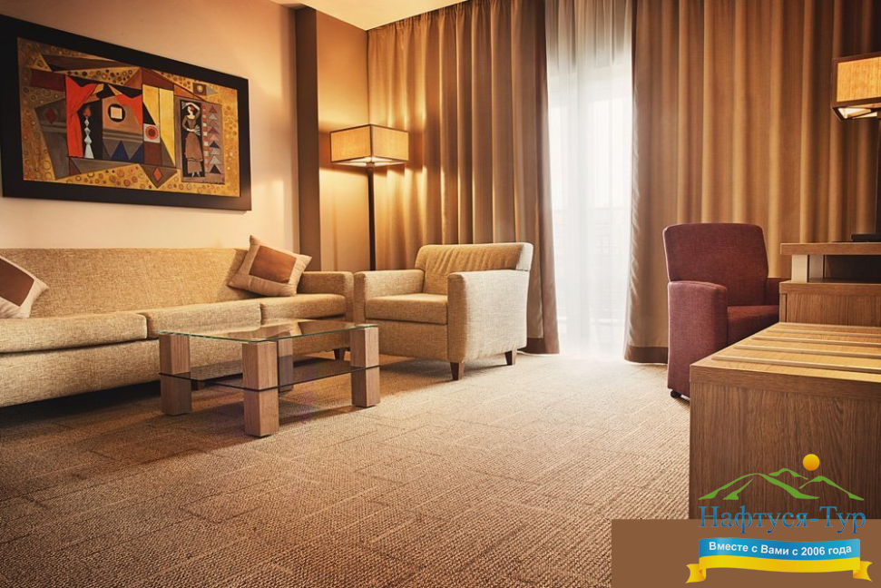 Расположение 4 мин. пешком до бювета №1, 8 мин. пешком до офиса «НАФТУСЯ-ТУР»