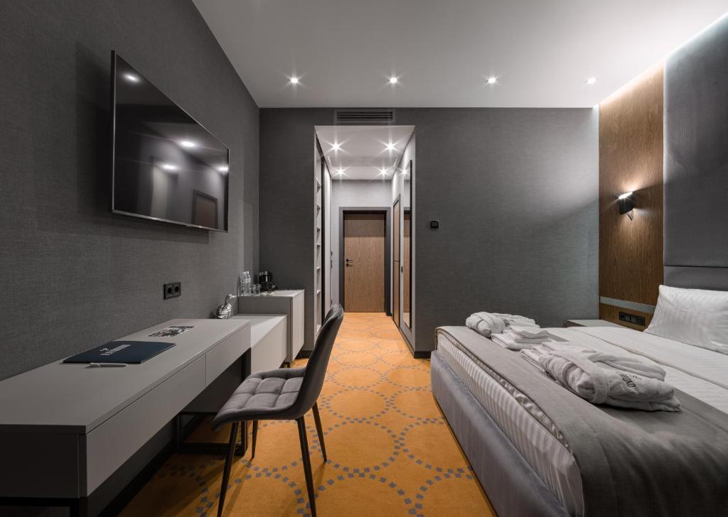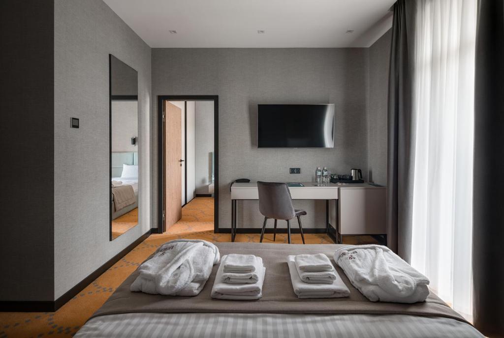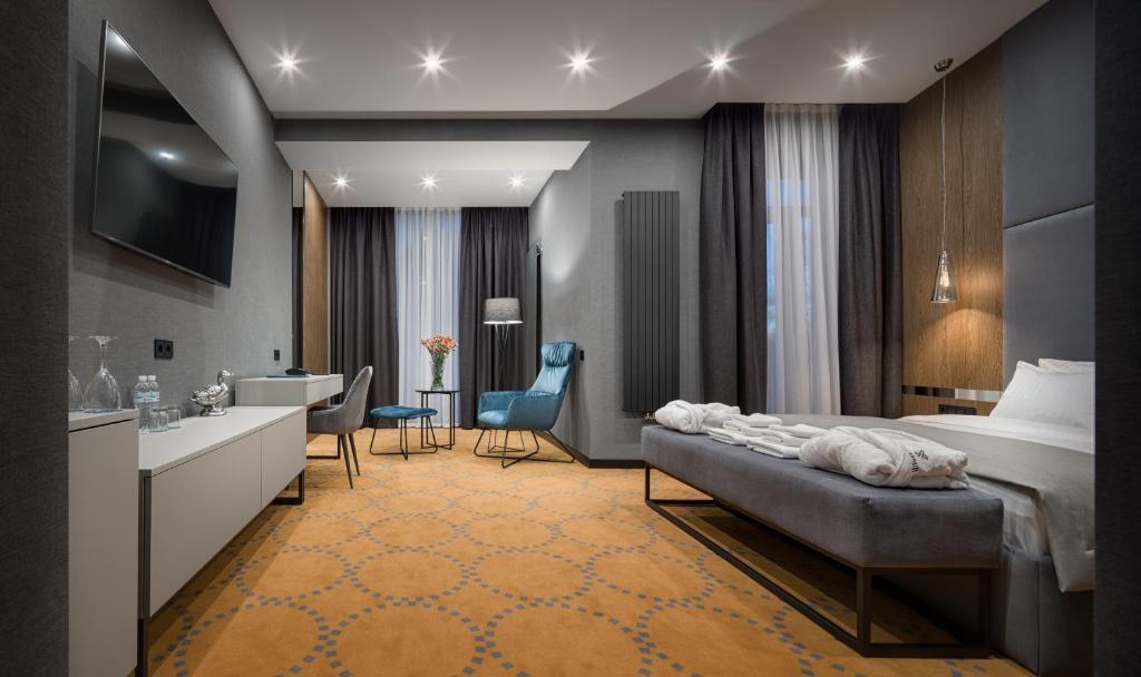 Кроме того, отель "Raymond" располагает собственным спа-центром, в котором гости могут воспользоваться гидромассажем, сауной, паровой баней, а также заказать различные виды массажа и косметические процедуры. Для тех, кто предпочитает активный отдых, в отеле есть фитнес-зал.