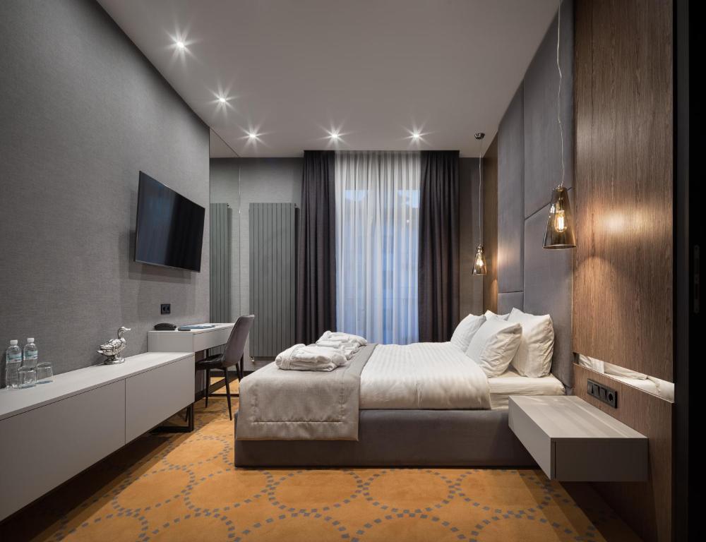 Отель предлагает гостям 21 номер разных категорий - от стандартных до люксов, которые оснащены всем необходимым для комфортного проживания: кондиционерами, телевизорами с плоским экраном, мини-баром, бесплатным Wi-Fi и прочим.