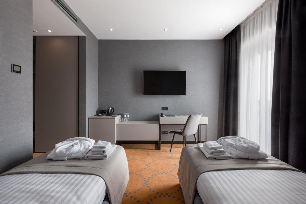 Отель расположен в тихом и спокойном районе города, в нескольких минутах ходьбы от центра и главных курортных улиц. Номера отеля оборудованы всем необходимым для комфортного проживания и отдыха. В распоряжении гостей - бесплатный Wi-Fi, телевизор, холодильник, чайник и принадлежности для чая/кофе. В ванных комнатах есть фен и бесплатные туалетно-косметические принадлежности.