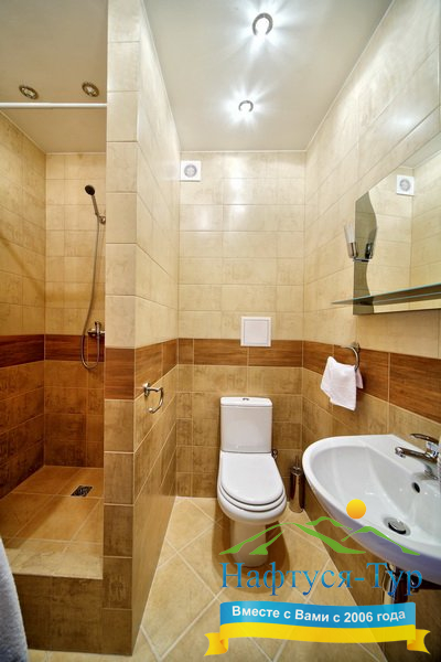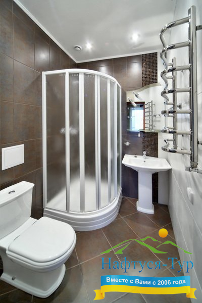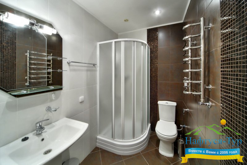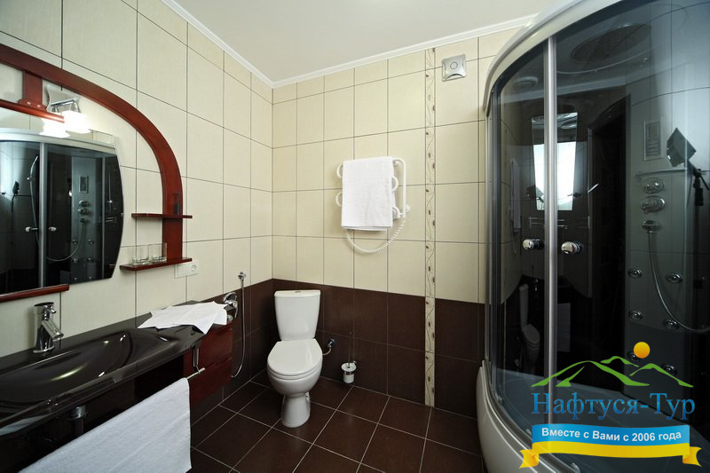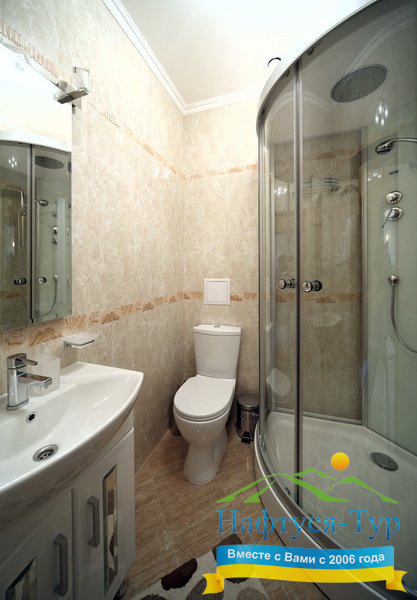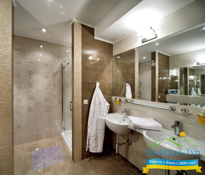 - душевая кабина, косметический набор, фен, халат