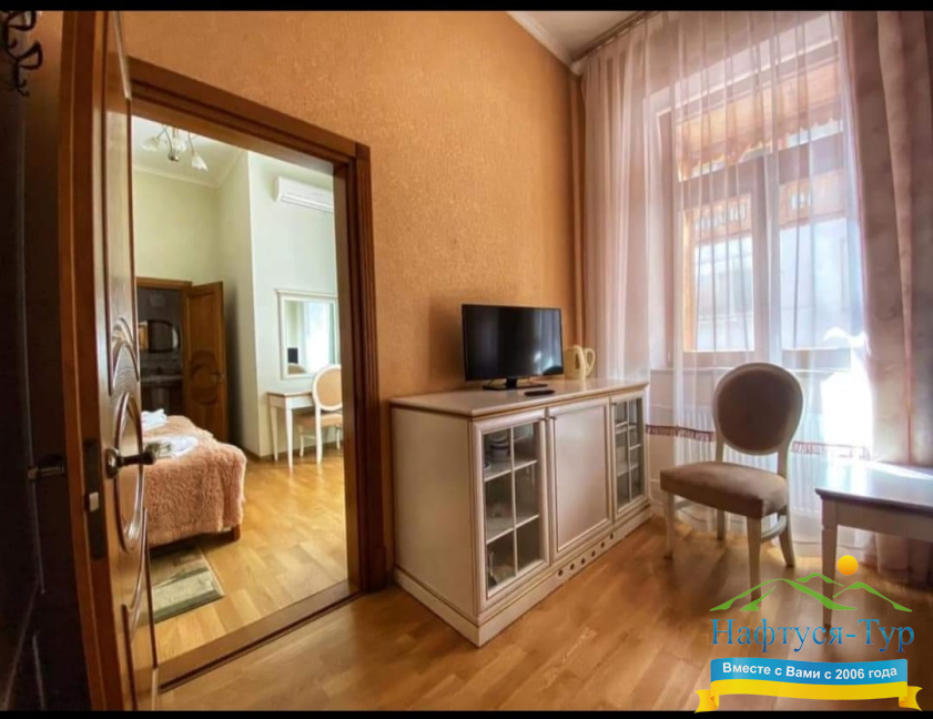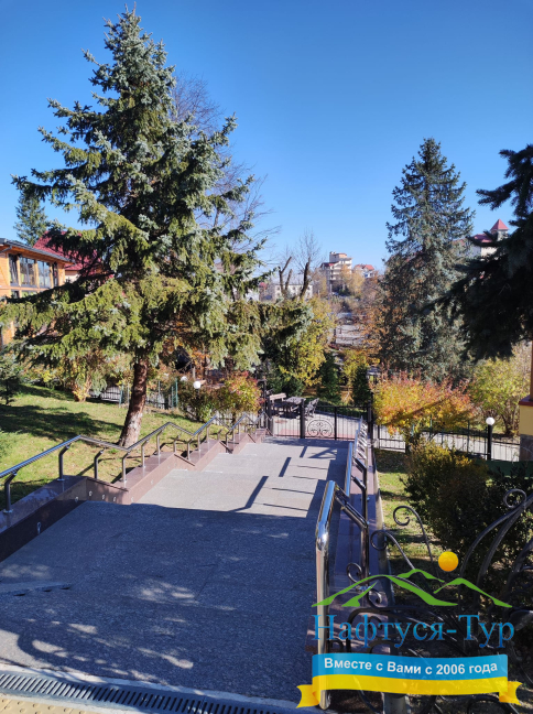 Расположение до санатория «Свитязянка»: 2 мин. пешком до бювета №1, 5 мин. пешком до офиса «НАФТУСЯ-ТУР»