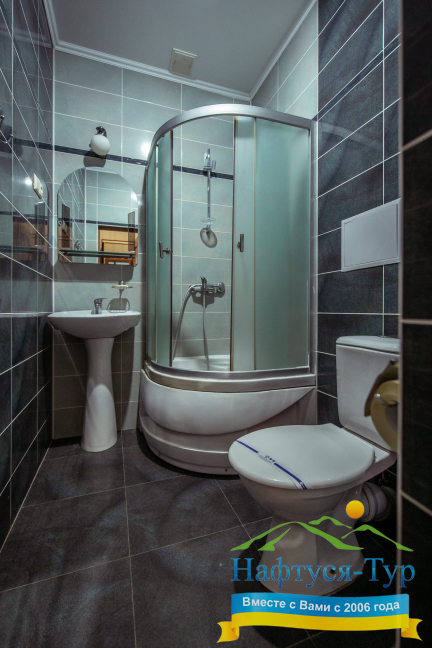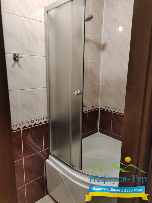 - душевая кабина, косметический набор, набор полотенец, фен, халат