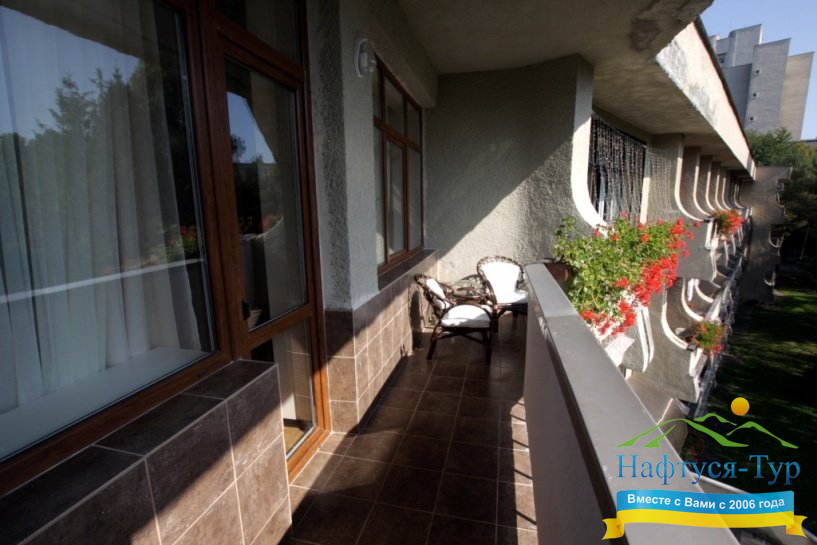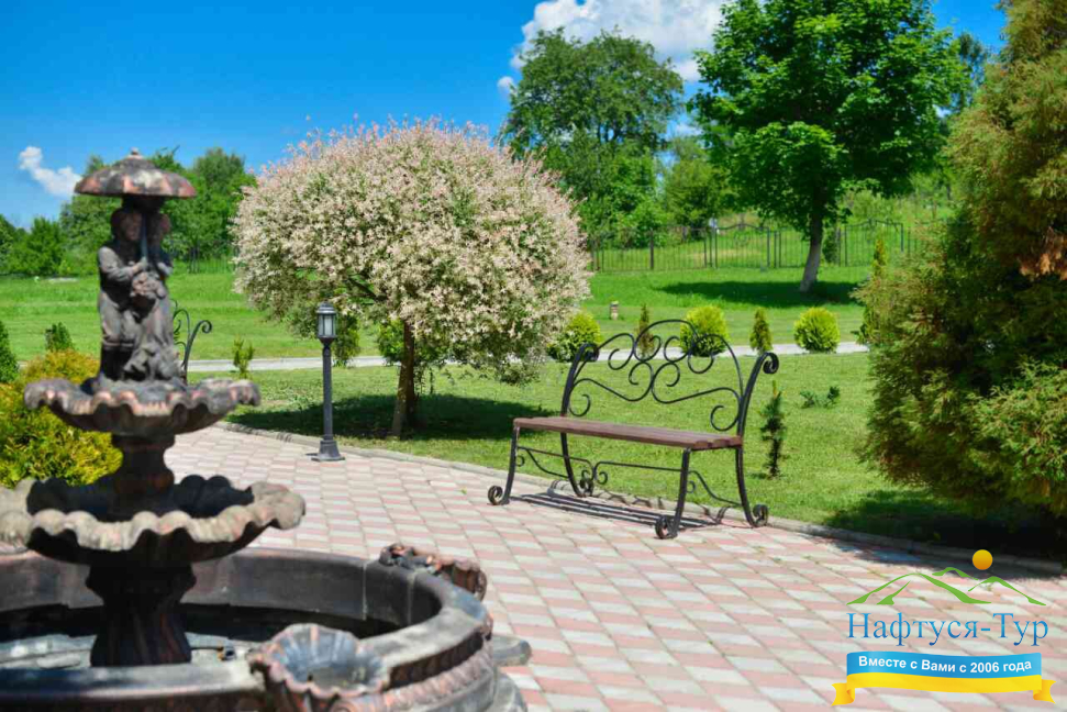 Санаторий находится в шаговой доступности от курортного парка Трускавца — идеального места для прогулок на свежем воздухе. Чистый горный воздух Карпат, тишина и живописные пейзажи способствуют полноценному восстановлению организма. Для активных гостей доступны спортивные площадки и тренажерные залы.