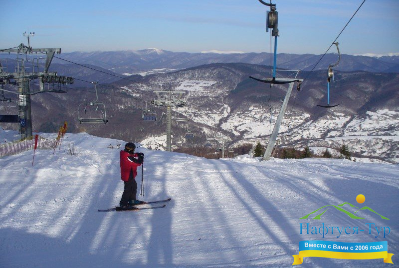 В конце села повернуть направо через железнодорожный переезд в направлении села Люта. Въехать в село Вышка и остановиться у подъемника.