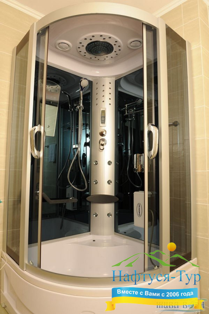 - душевая кабина, косметический набор, фен
