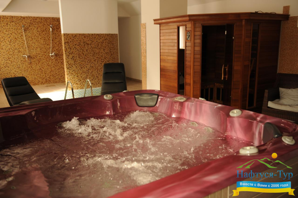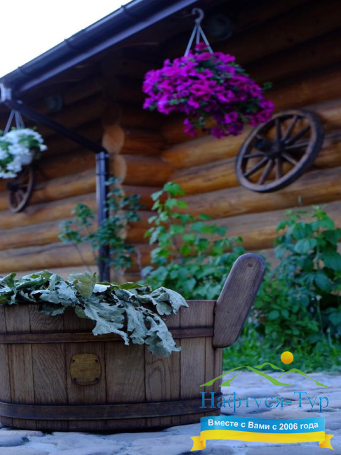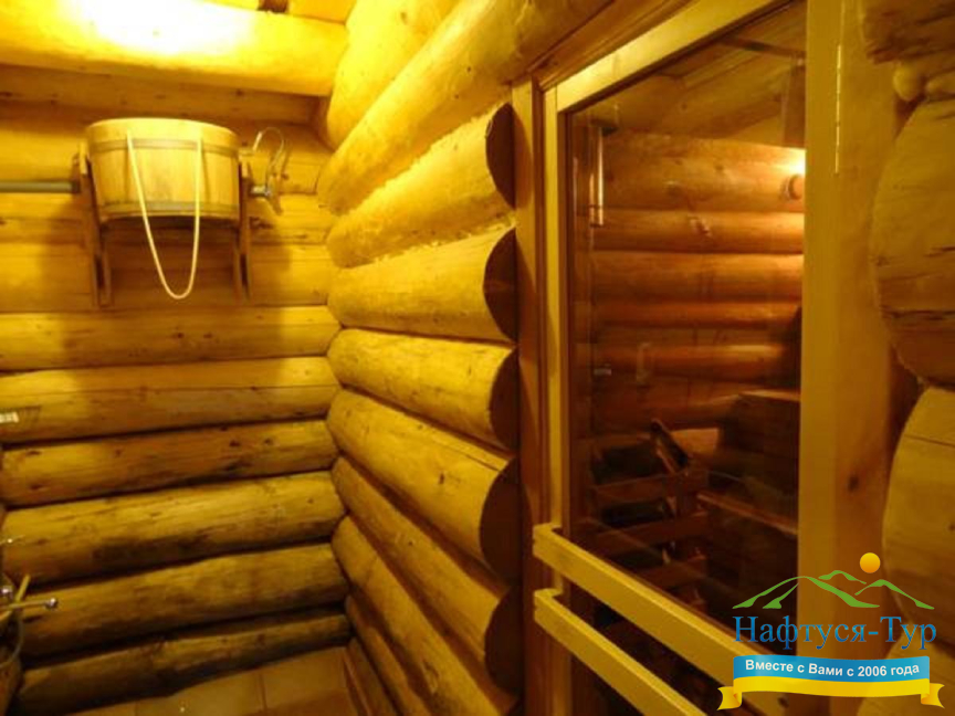 - русская баня, сауна, чан с минеральной водой