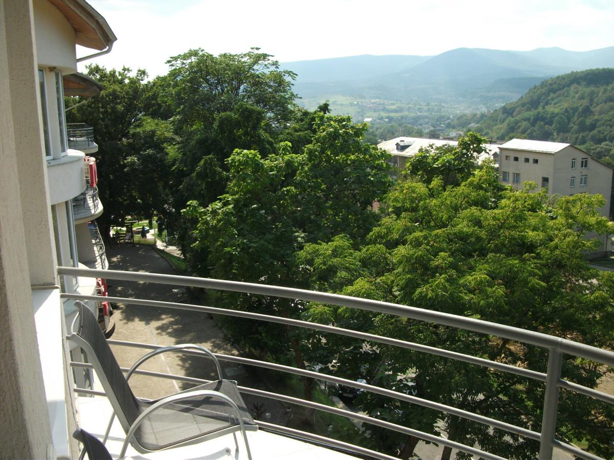 Отель "Квелле Поляна" - это сказочное место. Нас встретил радушный персонал. Номер у нас был шикарный. Комната огромная, с большими окнами и колоннами. Из окна открывался прекрасный вид на горы.