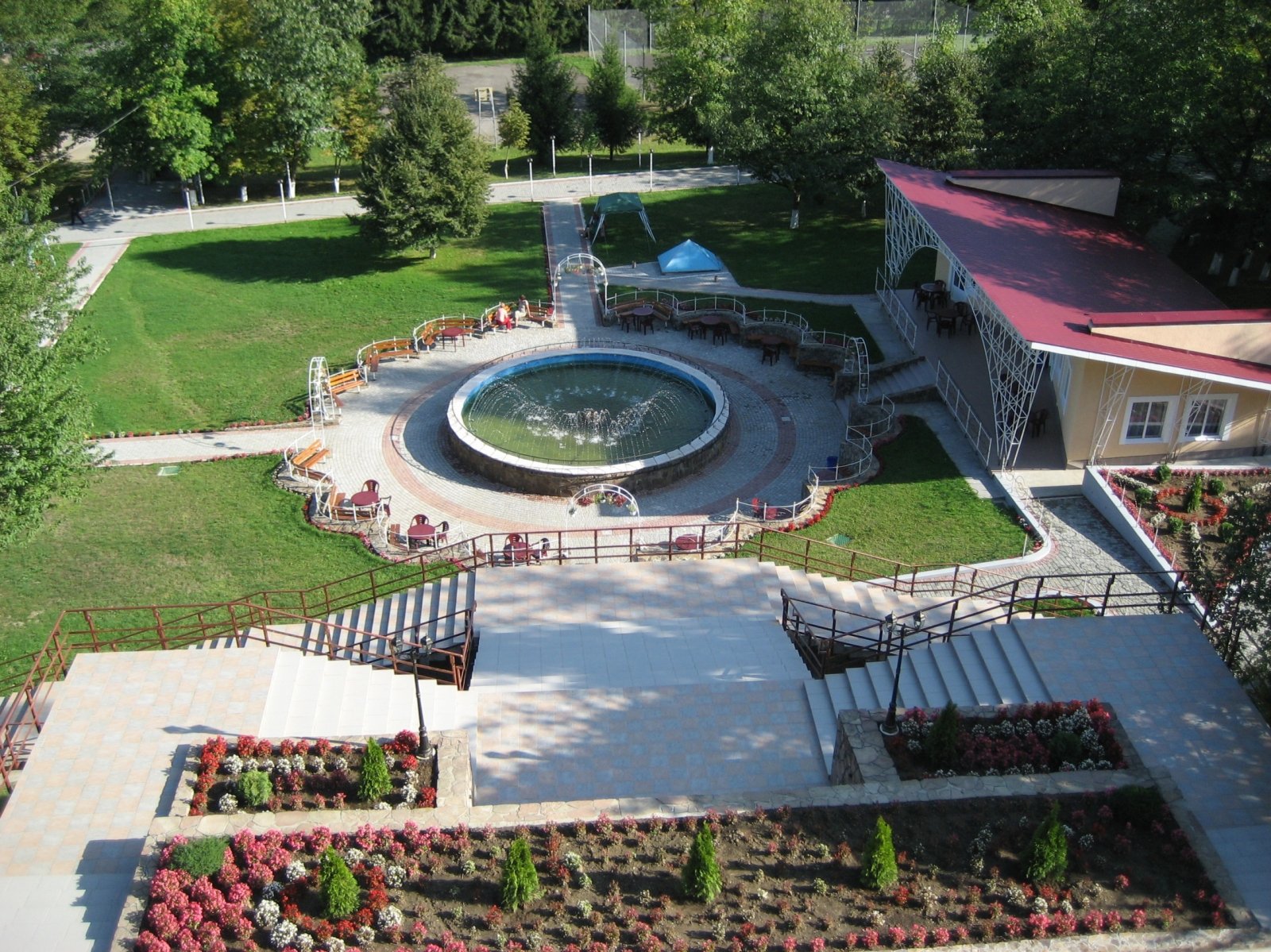 На территории санатория «Боржава» к услугам гостей предлагаются терраса с фонтаном, беседки, мангалы и барбекю.