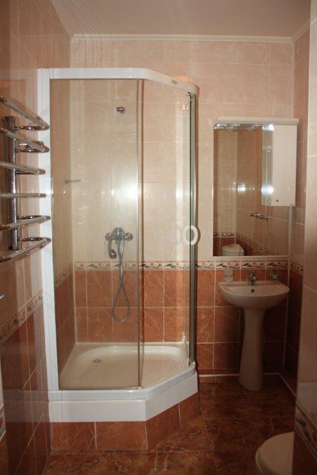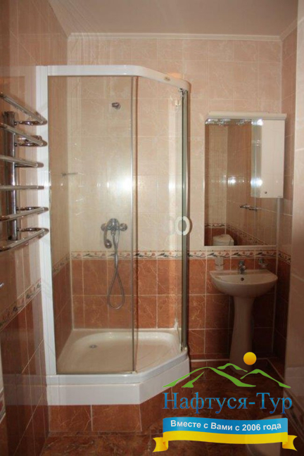 - ванна, душевая кабина, набор полотенец, фен