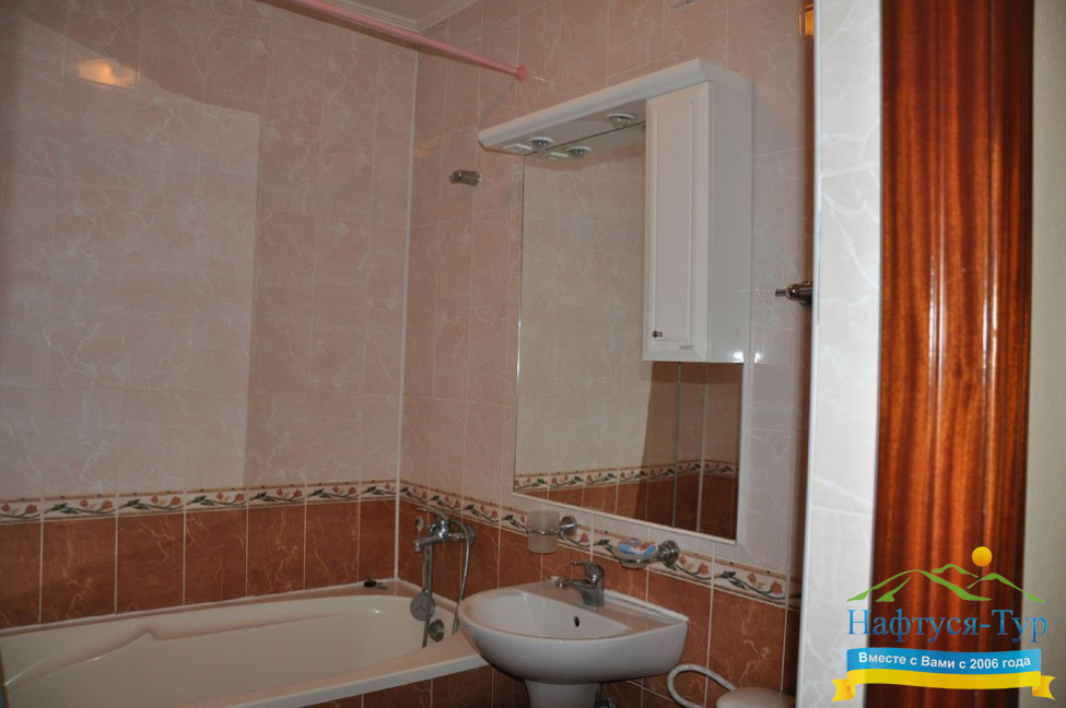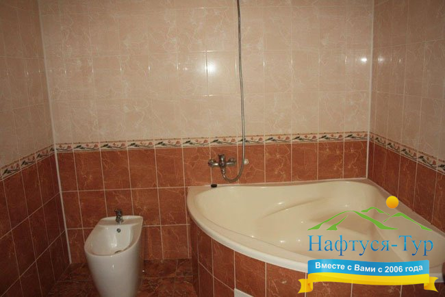 - ванна, набор полотенец, фен